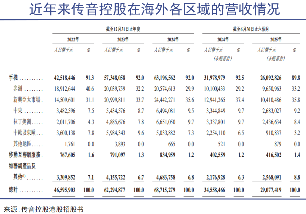 傳音控股并非沒(méi)有積極尋找非洲以外的第二曲線。相反,其成功開(kāi)辟了第二戰(zhàn)場(chǎng)。招股書(shū)顯示,從2023年開(kāi)始,傳音控股在新興亞太市場(chǎng)的營(yíng)收就已經(jīng)超過(guò)了傳統(tǒng)的非洲市場(chǎng)。
