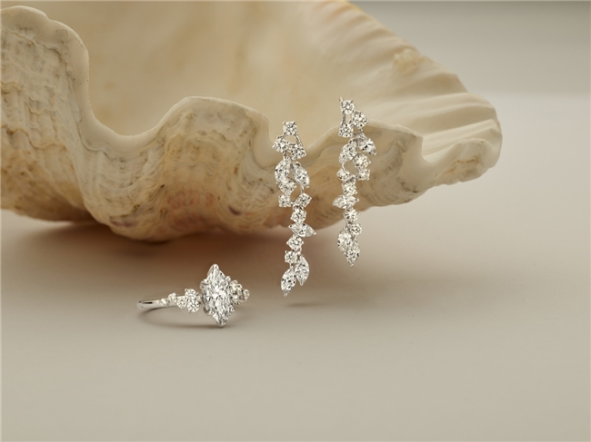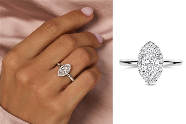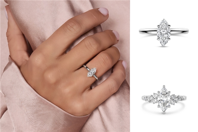 圍鑲設(shè)計(jì)進(jìn)一步強(qiáng)化馬眼形鉆石的輪廓表達(dá)。