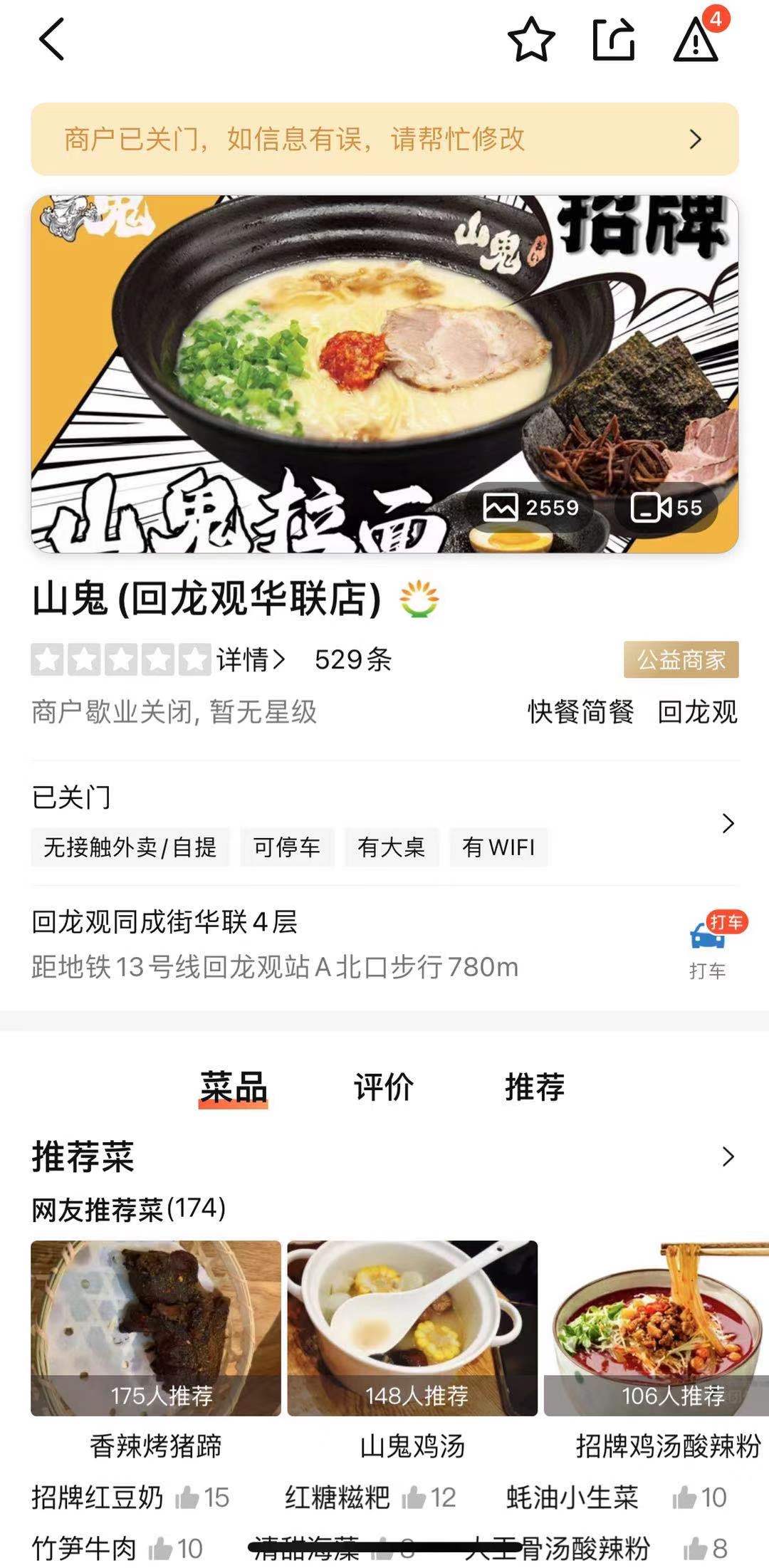 界面新聞查詢大眾點(diǎn)評(píng)發(fā)現(xiàn),目前山鬼僅在北京有一家名為“山鬼拉面·小吃”的門店在營(yíng)業(yè),主營(yíng)日式拉面,而中關(guān)村、回龍觀等北京其他門店目前均顯示歇業(yè)關(guān)閉狀態(tài)。