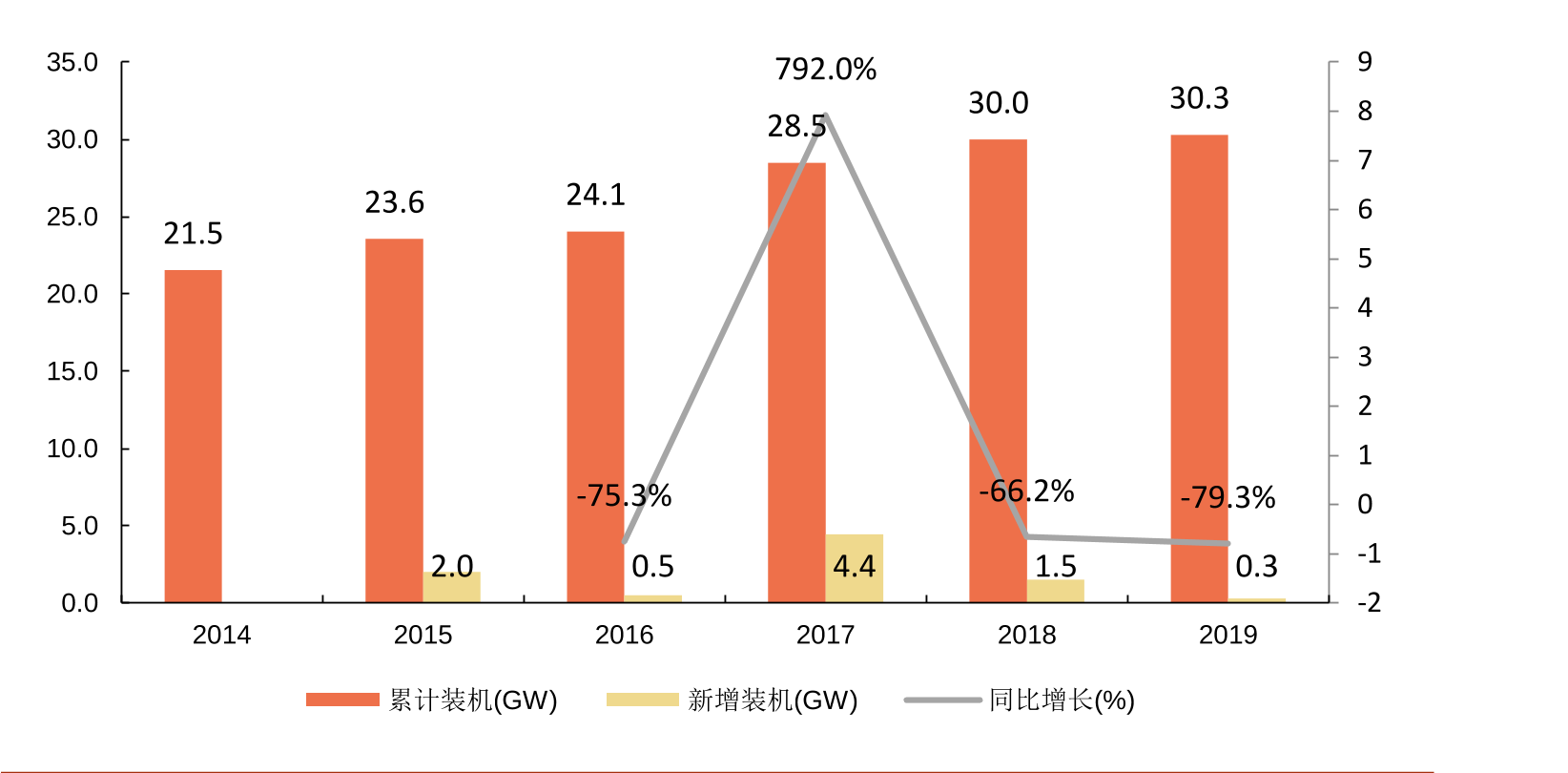 中國抽水蓄能新增及累計(jì)裝機(jī)量(2014-2019),資料來源:CNESA,申港證券研究所