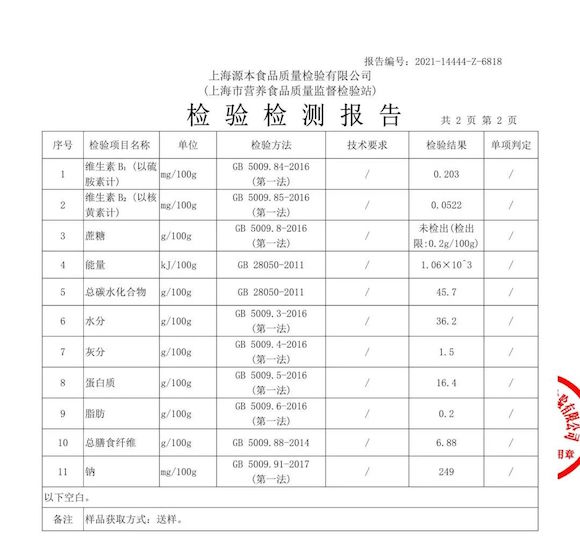 然而,專家在看了成分表后,感到十分奇怪。它包裝上明明白白寫(xiě)著,蛋白質(zhì)6.4g/100g,脂肪1.0g/100g,碳水化合物33.5g/100g,這些物質(zhì)總和為40.9g/100g。