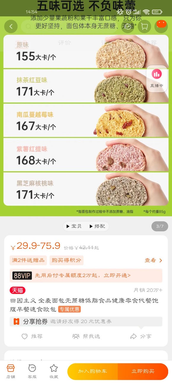 小姐姐也很震驚,她做過(guò)功課,減肥應(yīng)該控制碳水,選擇低熱量的食物,而這款面包宣傳頁(yè)面顯示1個(gè)才155大卡。
