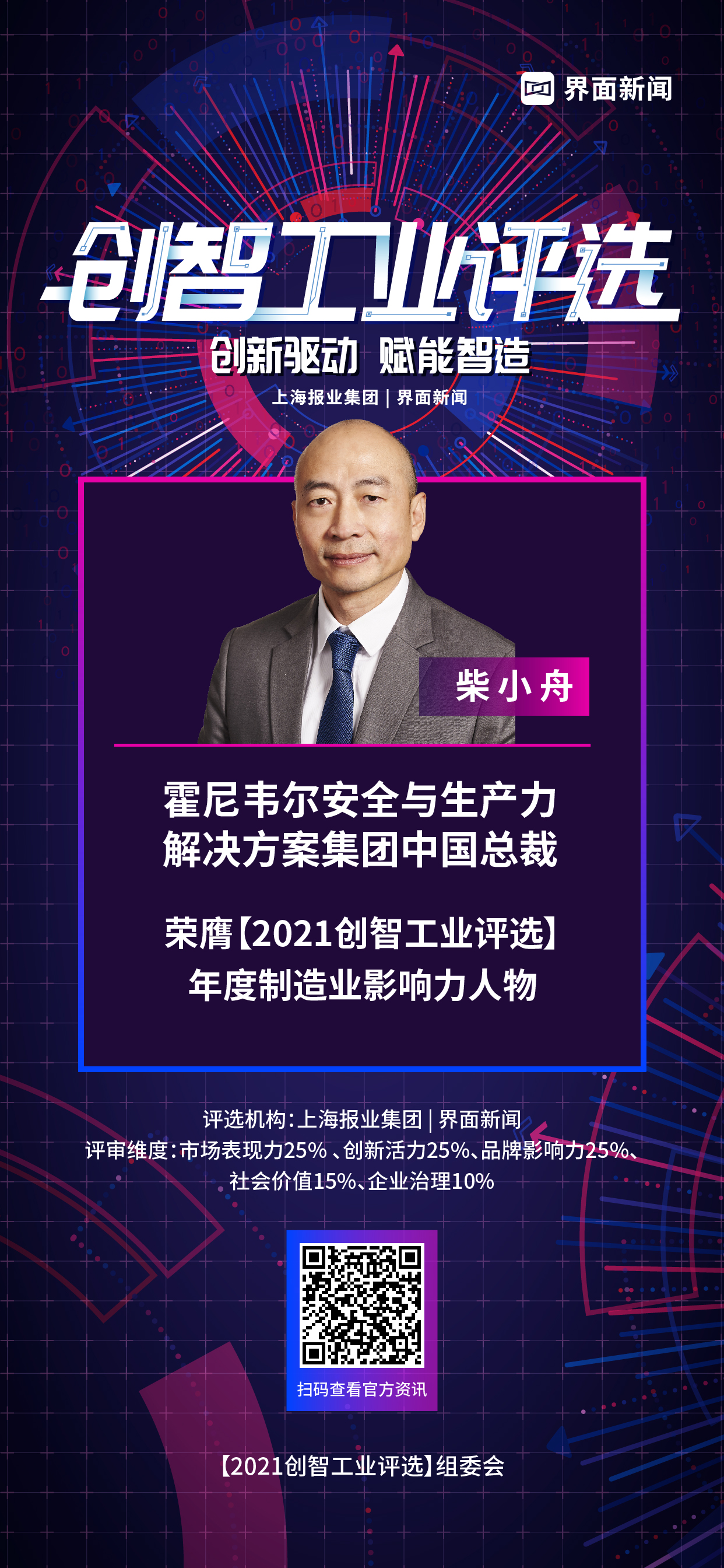 9月16日9:00-12:30,上海報業(yè)集團 | 界面新聞主辦的2021【界面創(chuàng)智工業(yè)論壇】正式舉辦,超30家龍頭企業(yè)集結(jié),帶來4場主題演講、1場高峰對話,共商工業(yè)領(lǐng)域的發(fā)展趨勢。同時,論壇頒發(fā)了2021【創(chuàng)智工業(yè)評選】年度大獎,此次評選中,霍尼韋爾安全與生產(chǎn)力解決方案集團中國總裁柴小舟憑借過去一年在公司重大戰(zhàn)略規(guī)劃和創(chuàng)新發(fā)展中所發(fā)揮的出色作用,榮獲年度影響力制造業(yè)人物獎。