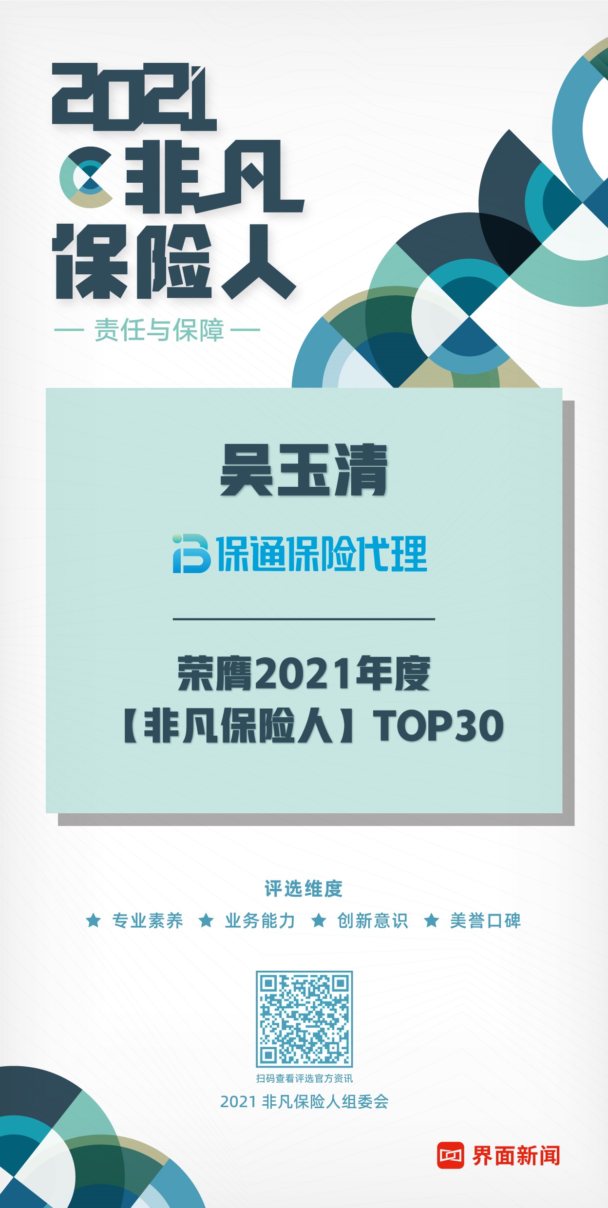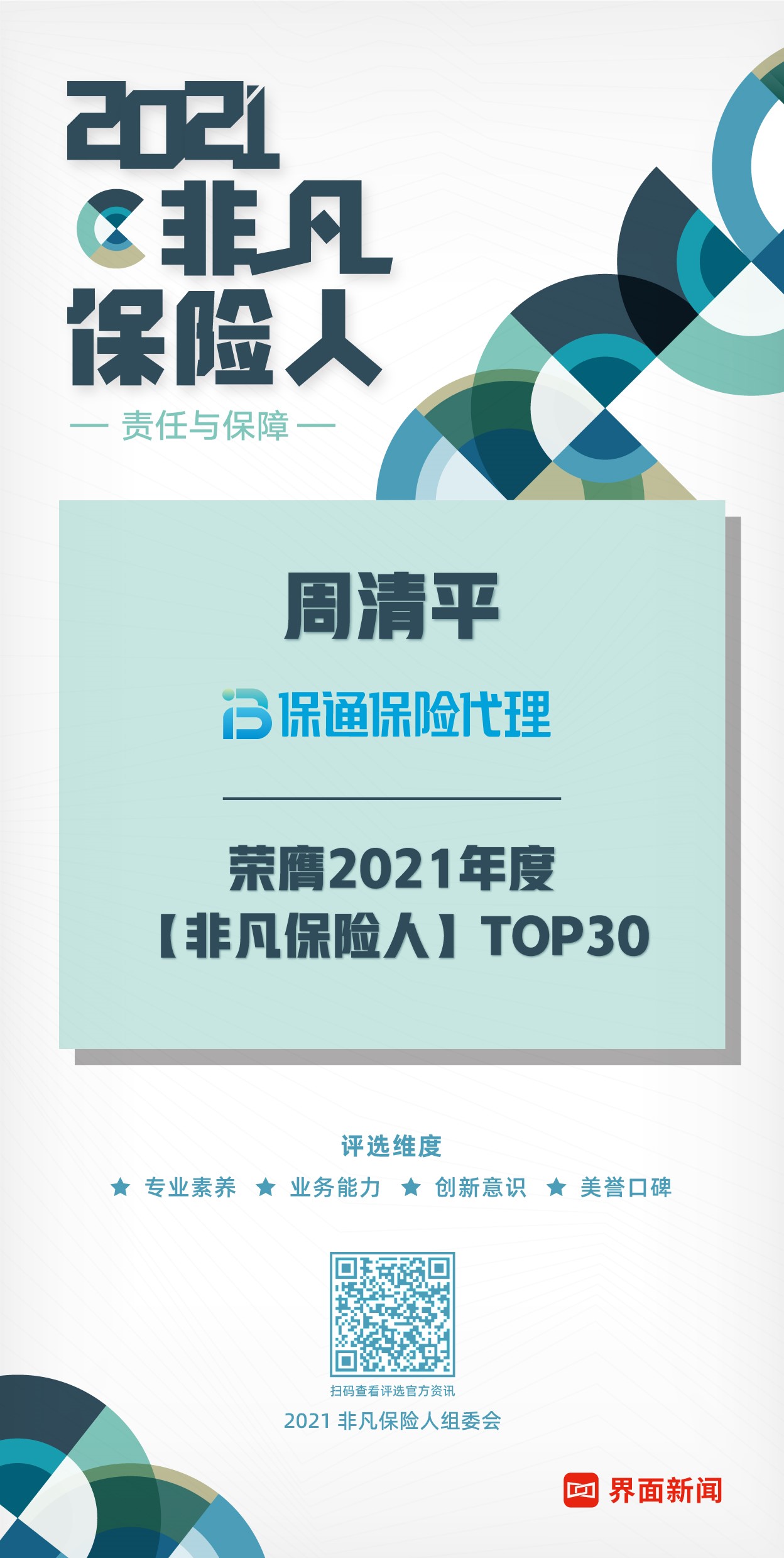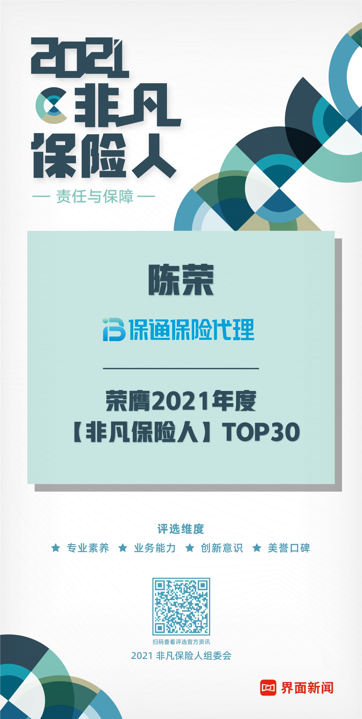 保通保險(xiǎn)代理陳榮、吳玉清、周清平榮獲2021年度【非凡保險(xiǎn)人】TOP30榮譽(yù)