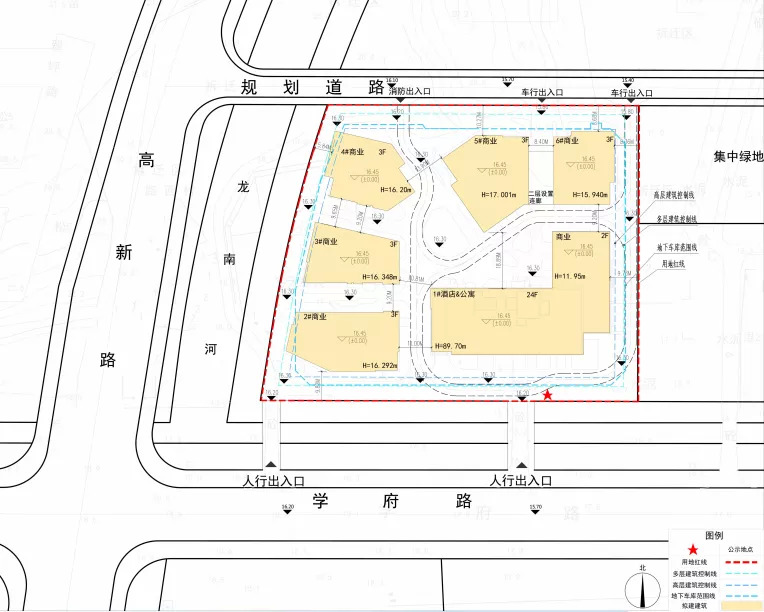 項目位于江北新區(qū)沿江街道,用地范圍東至社區(qū)中心,南至學府路,西至高新路,北至規(guī)劃道路。規(guī)劃用地性質(zhì)為 Bb 商辦混合用地,用地面積約11821.37 平方米,容積率≤3.0,綠地率≥20%,建筑高度≤100 米。