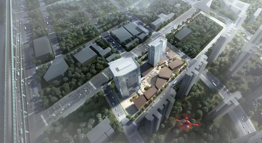 從效果圖來看,北聯(lián)永康廣場由一棟89米酒店及公寓,和6棟15-17米的商業(yè)所組成。