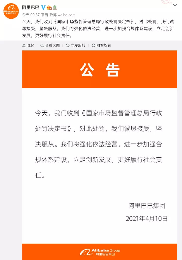 2021年4月,因?yàn)E用市場(chǎng)支配地位行為,阿里巴巴被處182.28億元巨額罰款;10月,美團(tuán)也因“二選一”,涉嫌壟斷行為被罰34.42億元;11月,百度、阿里、京東、騰訊等互聯(lián)網(wǎng)企業(yè)又因未依法申報(bào)違法實(shí)施經(jīng)營(yíng)者集中,而被行政處罰50萬(wàn)元。