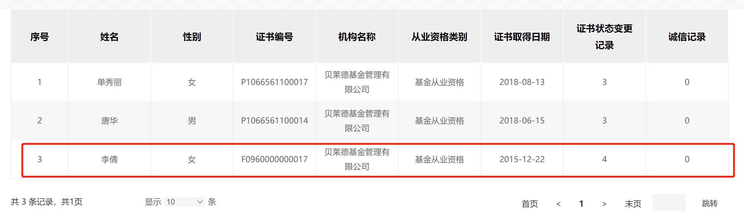 中基協(xié)官網(wǎng)信息顯示,貝萊德基金目前共有63名員工,其中備案的基金經(jīng)理有3位,分別為唐華、單秀麗以及李倩。唐華、單秀麗均為貝萊德原中國私募團隊成員,也是貝萊德公募基金首只產(chǎn)品的基金經(jīng)理。李倩則是目前唯一一位從外部公司跳槽來的基金經(jīng)理。