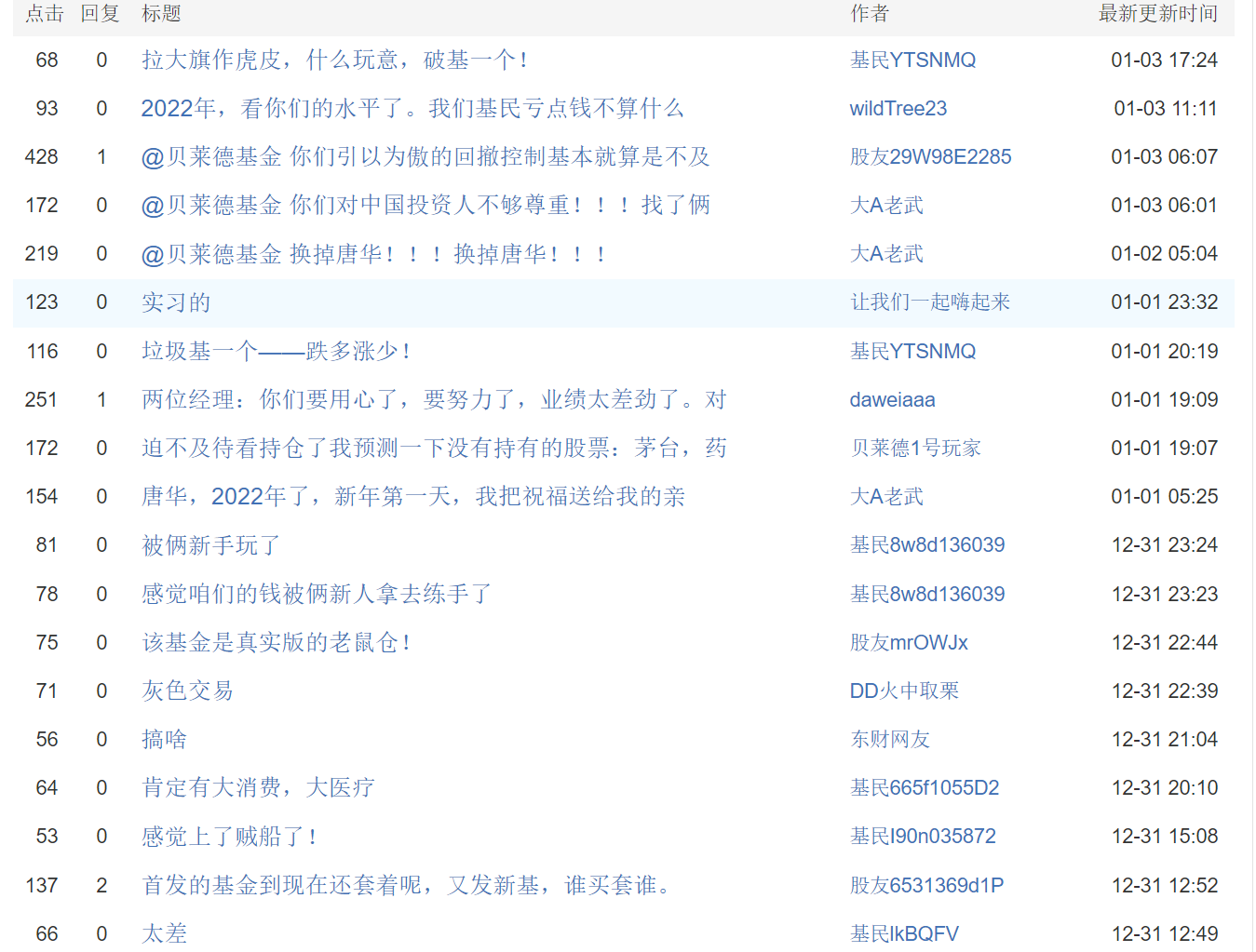 或許是業(yè)績未達預期,不少基民紛紛開啟吐槽模式。“漲時像固收跌時像純股,沒看出來主動管理的正向作用,也沒看出和國內(nèi)基金的區(qū)別?!币晃怀钟性摶鸬幕裨谔焯旎鹫搲邪l(fā)文表示。