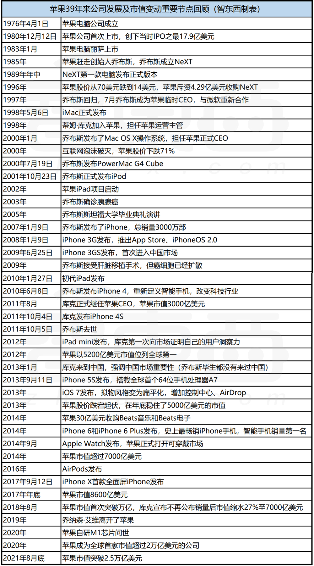 蘋(píng)果39年來(lái)公司發(fā)展及市值變動(dòng)重要節(jié)點(diǎn)回顧: