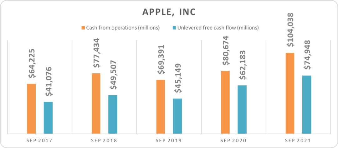 ▲2017年9月-2021年9月蘋(píng)果現(xiàn)金流情況,來(lái)源:Seekingalpha
