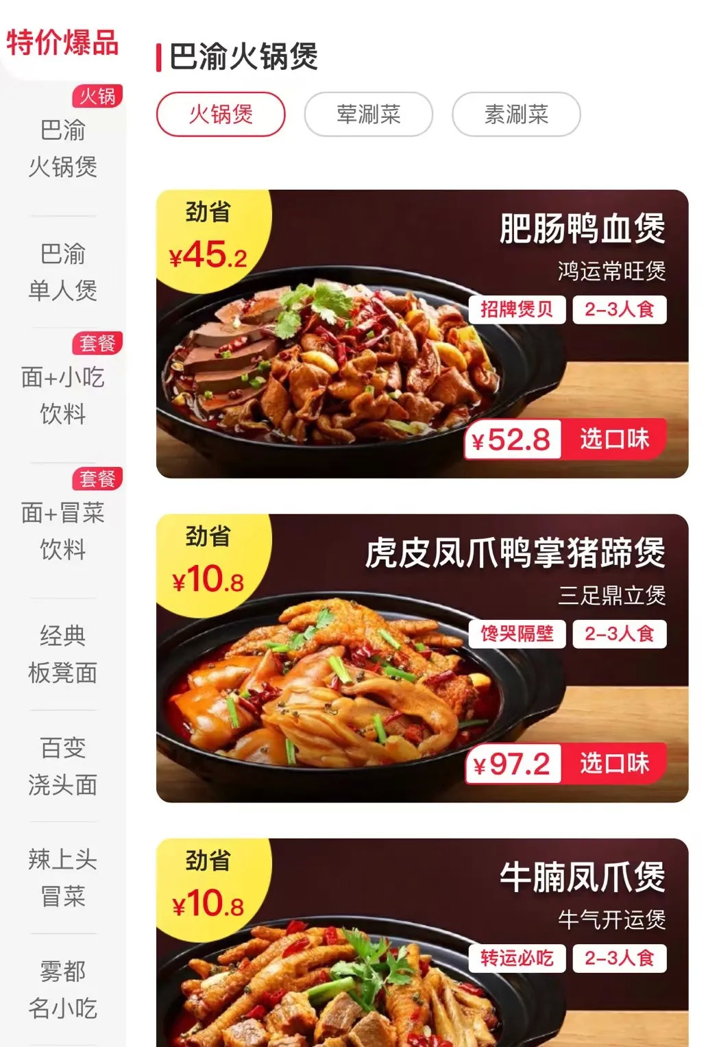 趣巴渝部分菜品,圖/趣巴渝微信小程序