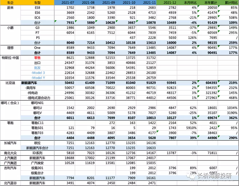 小結:特斯拉雖然還沒有公布中國工廠的批發(fā)數(shù)據(jù)和中國市場的零售數(shù)據(jù),但預期不會差。上述這些數(shù)據(jù)都紛紛體現(xiàn)出了中國新能源車市百花齊放、百家爭鳴的繁榮景象,2022年新車會持續(xù)密集發(fā)布,這都為2022年新能源車市的高增長奠定了基礎。