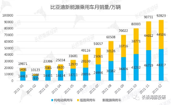 比亞迪12月交付9.3萬輛,2021年累計交付量突破60萬輛(同比增219%),強者恒強。