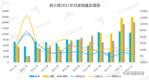相比一線的蔚小理(年終12月份銷量是年初1月份銷量的1.5-2.5倍),其環(huán)比增速和當前的絕對銷量都構成新能源車市的重要玩家。