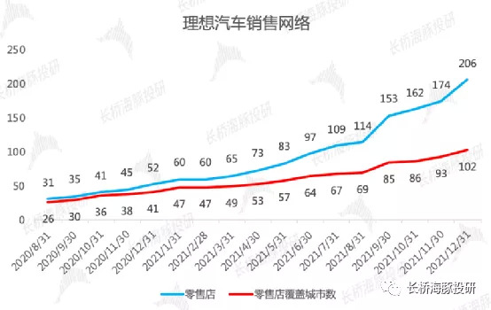 渠道方面:雖然最終的量不及小鵬,但公司3-4季度的門店擴張速度明顯加快,截止2021年底,公司在102個城市擁有206家門店。