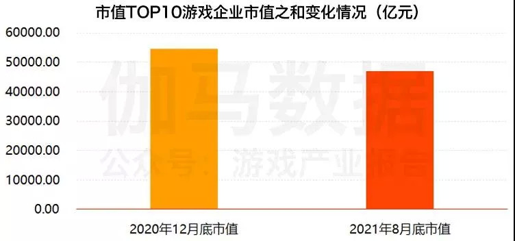據(jù)伽馬數(shù)據(jù)(CNG)統(tǒng)計(jì),從2020年12月至2021年8月,國內(nèi)市值TOP10的游戲企業(yè)市值之和出現(xiàn)變化,下降超過7000億元。