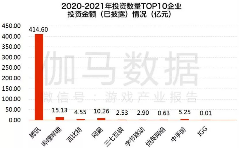 僅看投資數(shù)量,還不能完全表征騰訊在游戲投資市場的統(tǒng)治地位,更重要的是金額: