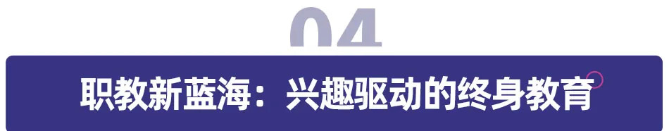 而隨著人口老齡化的加劇,未來(lái)一段時(shí)期,延遲退休、終身學(xué)習(xí)的趨勢(shì)將越發(fā)明朗。以興趣驅(qū)動(dòng)的終身教育也將成為職業(yè)教育新的藍(lán)海市場(chǎng)。