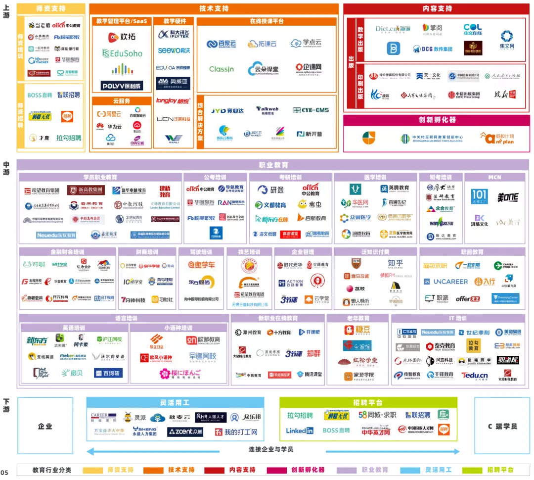 中國(guó)職業(yè)教育行業(yè)圖譜,來(lái)源:多鯨教育研究院整理