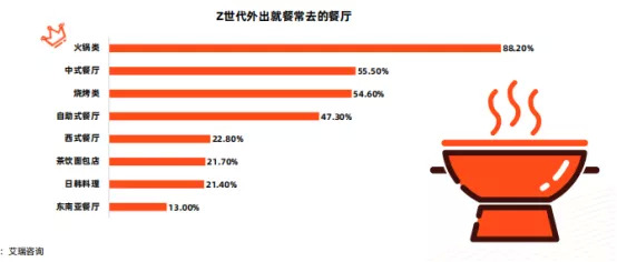 到店餐飲,火鍋類、中式餐廳、燒烤類是最受Z世代青睞的三大品類。