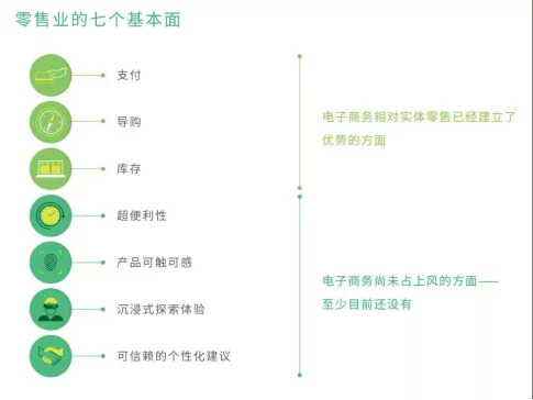 但在便利性、產(chǎn)品可觸達性、沉浸式體驗、個性化建議方面電子商務(wù)尚未占據(jù)優(yōu)勢,這反而是實體店可建立和維持的競爭優(yōu)勢領(lǐng)域。
