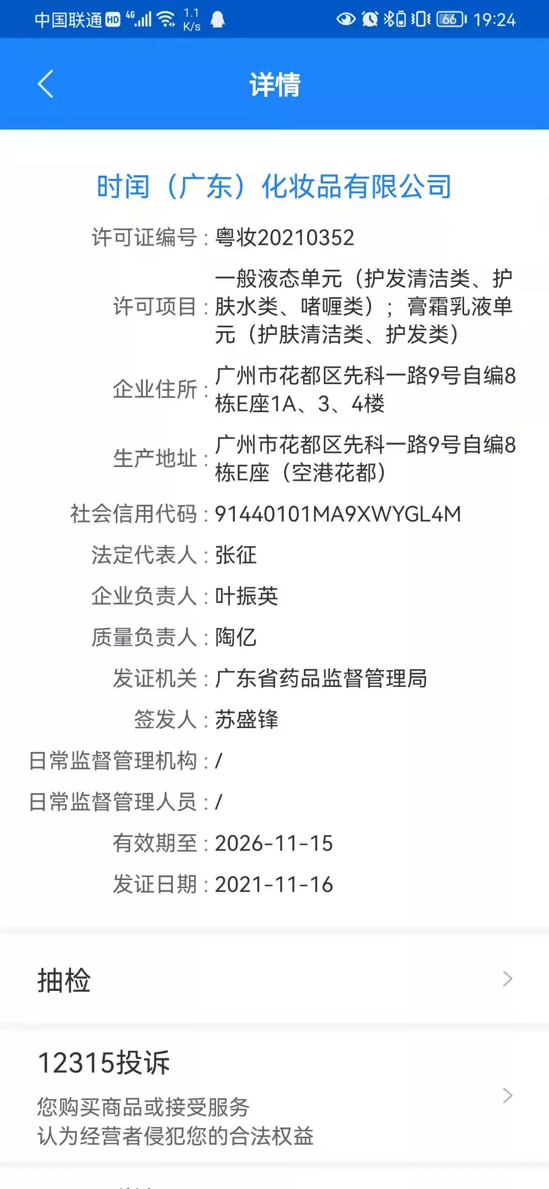 成立于2010年(含)之后的15家企業(yè)中,最“年輕”的企業(yè)則是時閏(廣東)化妝品有限公司(下稱廣東時閏)。該公司成立于2021年6月22日,根據(jù)化妝品監(jiān)管APP信息顯示,廣東時閏于去年11月15日才獲得化妝品生產(chǎn)許可證,僅3個月不到,就主動注銷了化妝品生產(chǎn)許可證,目前暫未查詢到該公司生產(chǎn)的相關(guān)產(chǎn)品的備案信息,需要說明的是,在國家藥監(jiān)局化妝品生產(chǎn)許可信息管理系統(tǒng)服務(wù)平臺已查詢不到該企業(yè)。