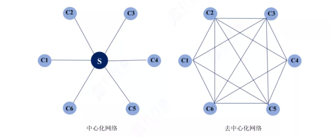 圖:中心化及去中心化網絡結構示意(來源:東興證券)