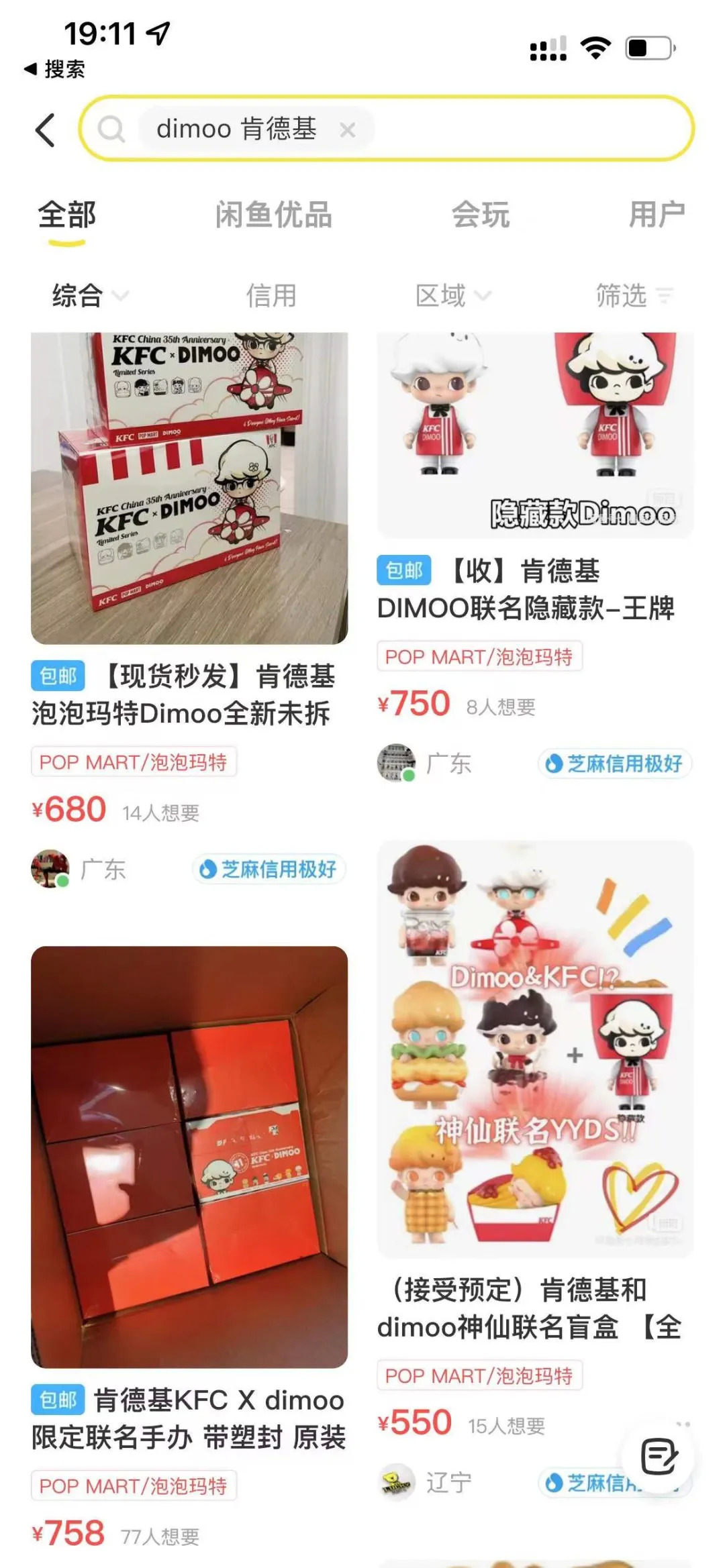 盡管有網(wǎng)友曬出一口氣買了106份全家桶套餐的購物小票外,然而肯德基官博相關(guān)活動下,則是其他網(wǎng)友對活動產(chǎn)品數(shù)量少、咸魚上盲盒單賣價格高、又是一場“饑餓營銷”怨聲載道。這場“買櫝還珠”的聯(lián)動營銷,不由得讓人聯(lián)想起去年KFC×《原神》的活動。考慮到營銷效果帶來的社會影響,KFC×DIMOO可能還不如KFC×《原神》。