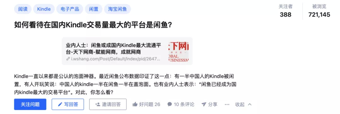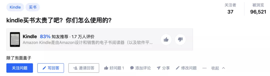 購買一臺性價比更高的二手Kindle(知乎用戶:五折價格,99成新Kindle)成了不少人的選擇,甚至有人戲稱:中國的Kindle一半在閑魚一半在泡面。這樣的調(diào)侃也道出了Kindle作為一臺電子產(chǎn)品的尷尬:核心功能閱讀沒發(fā)揮,用戶長期利用率偏低。