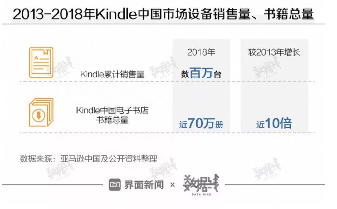 盡管亞馬遜官方從未正式發(fā)布過Kindle的銷售數(shù)據(jù),但是IDC數(shù)據(jù)顯示,到2010年,全球電子閱讀器銷售額上升到1280萬臺,其中Kindle占了48%。2013年Kindle正式進入中國市場,中商產(chǎn)業(yè)研究院數(shù)據(jù)顯示Kindle的市場規(guī)模在2014年到2017年間從30億元增長到37億元;界面新聞相關(guān)報道說明Kindle曾在中國占據(jù)65%以上的市場份額,2018年國內(nèi)累計銷售數(shù)百萬臺,一度是國內(nèi)電子閱讀器的龍頭老大。
