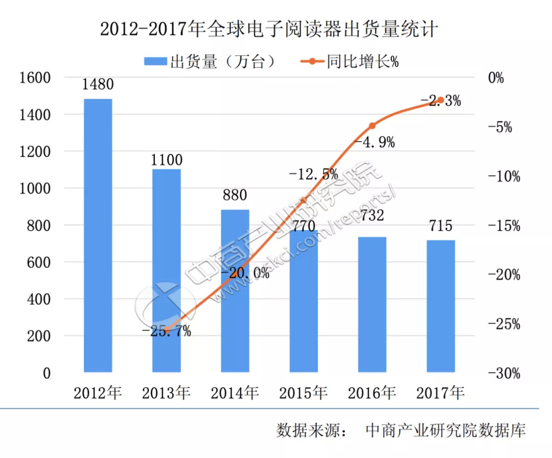 作為一個對閱讀具有革新意義的產(chǎn)品,Kindle等閱讀器在普及過程中已經(jīng)過了最初的迅速擴張期。全球電子閱讀器出貨量顯示,2012年到2015年,閱讀器的出貨量降低了近一半,2015年以來整體的出貨率基本處于緩慢下降的狀態(tài)。智研咨詢對中國電子閱讀器市場進行預(yù)測,2020年到2023年中國電子書閱讀器出貨量從237萬臺(年)增長到275萬臺(年),也已經(jīng)表現(xiàn)出疲態(tài)。