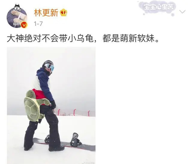 有趣的是,小烏龜護(hù)臀從一開始只是護(hù)具的定位,逐漸開始延伸出一些情緒價(jià)值。戴著“小烏龜”護(hù)臀的滑雪新手們絲毫不介意黑一把自己,曬出“摔得四仰八叉”的黑照也成為滑雪學(xué)習(xí)之路上的趣事。此前演員林更新就曾曬出過自己“龜殼護(hù)體”的滑雪照片并評(píng)論:“大神絕對(duì)不帶小烏龜,都是萌新軟妹。”這一言論也被粉絲笑懟是“暗示自己軟萌”、“林狗真的很怕摔”。而隨著滑雪經(jīng)濟(jì)的升溫,業(yè)內(nèi)也逐漸有了“學(xué)滑雪進(jìn)階全靠摔屁股墩兒”的調(diào)侃。