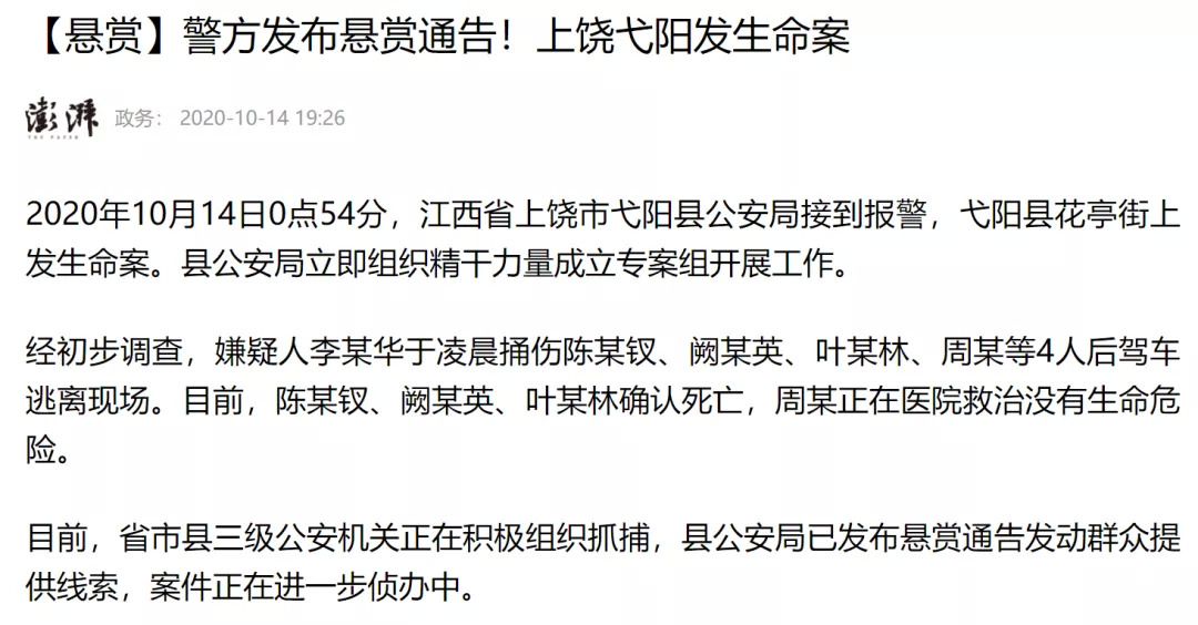 就拿發(fā)生在去年的一起懸賞命案為例:當(dāng)時(shí)江西省弋陽(yáng)縣發(fā)生了一起重大刑事案件,為了盡快破案,警方設(shè)置了非??捎^的懸賞金額。
