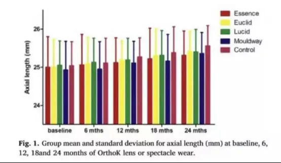 OK鏡的效果也得到了多方驗(yàn)證。2019年,溫醫(yī)大附屬眼視光醫(yī)院做了臨床研究,分別選取四個(gè)不同品牌的OK鏡,經(jīng)過(guò)兩年隨訪發(fā)現(xiàn),在佩戴的近視兒童中,有效減慢了眼軸增長(zhǎng)。
