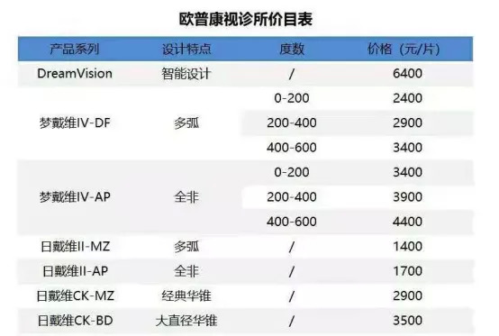 而在公開(kāi)資料中,歐普康視銷(xiāo)量最高的“夢(mèng)戴維IV全非”產(chǎn)品0度~200度為3400元/片,200度~400度3900元/片,400度~600度4400元/片,DreamVision智能化設(shè)計(jì)系統(tǒng)6400元/片,也就是說(shuō),一副的價(jià)格約在6800元~12800元,出廠價(jià)格與終端價(jià)格相去甚遠(yuǎn)。