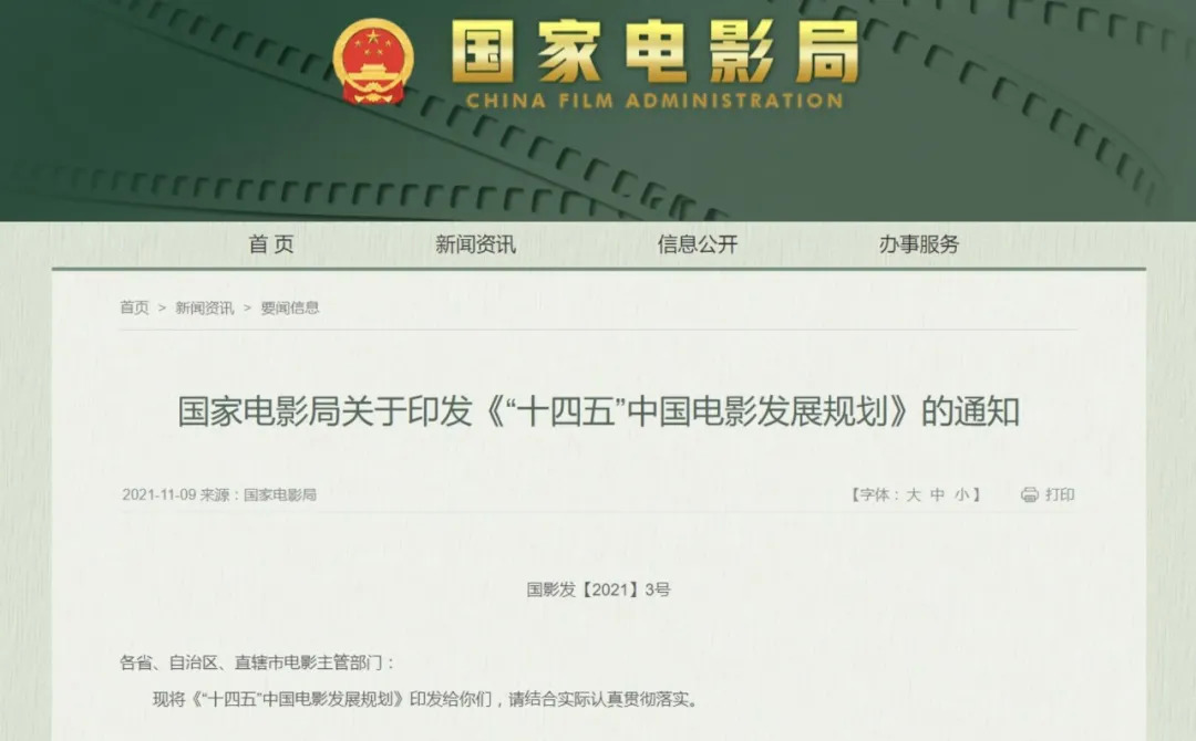 在此之前,去年11月,國家電影局發(fā)布的《“十四五”中國電影發(fā)展規(guī)劃》,表示2035年我國將建成電影強國,中國電影實現(xiàn)高質(zhì)量發(fā)展,電影創(chuàng)作生產(chǎn)能力顯著增強,彰顯中國精神、中國價值、中國力量、中國美學的精品力作不斷涌現(xiàn)。另外,《規(guī)劃》也對未來五年中國電影的發(fā)展目標提出了一些量化的數(shù)據(jù),如每年推出10部左右叫好又叫座的電影精品力作,每年票房過億國產(chǎn)影片到達50部左右。另外《規(guī)劃》里也進一步展望,中國電影將培養(yǎng)造就一批世界知名的電影藝術(shù)家,中國電影在世界電影格局中的話語權(quán)和影響力將大幅提升。