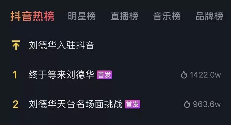 △圖9:劉德華抖音賬號(hào)開(kāi)通后的抖音熱榜