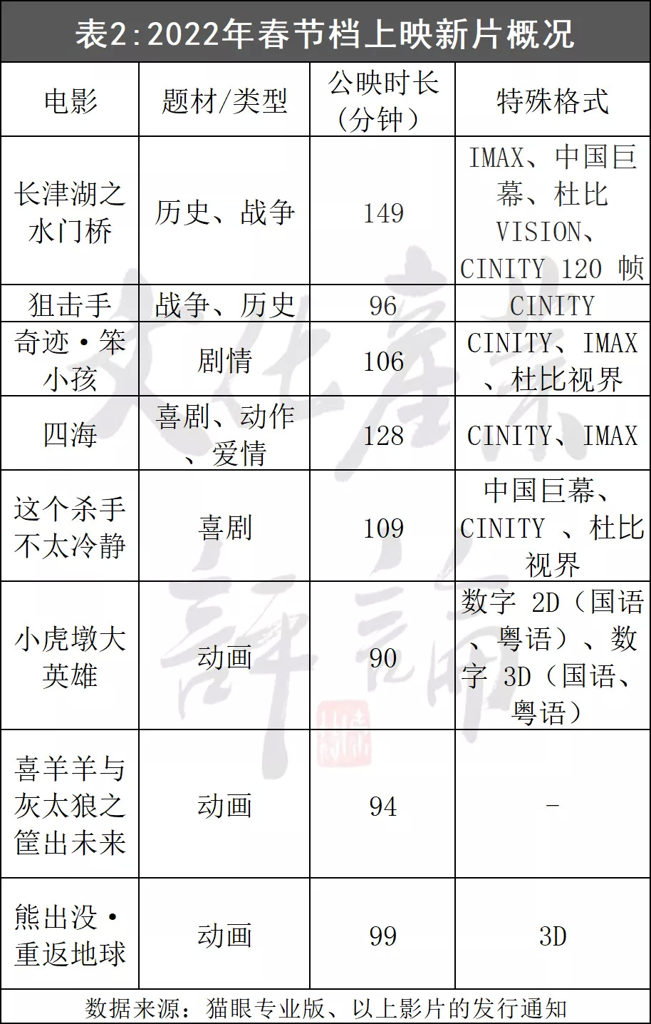 現(xiàn)在《水門(mén)橋》被公認(rèn)為檔期冠軍,但存在變數(shù)。時(shí)長(zhǎng)149分鐘是檔期之最,影院排5場(chǎng)《水門(mén)橋》的時(shí)間可以排出7場(chǎng)《奇跡·笨小孩》或《這個(gè)殺手不要太冷靜》。在幾乎滿(mǎn)座的情況下,場(chǎng)次越多影院的收益越高。《長(zhǎng)津湖》積累的口碑,在帶來(lái)熱度的同時(shí),也抬高了觀眾期待。還有類(lèi)型與題材。春節(jié)檔冠軍中,喜劇和家庭元素占比最高,《水門(mén)橋》的對(duì)手——《這個(gè)殺手不太冷靜》是純喜劇、《奇跡·笨小孩》有兄妹情、《四?!芳婢呦矂∨c愛(ài)情。
