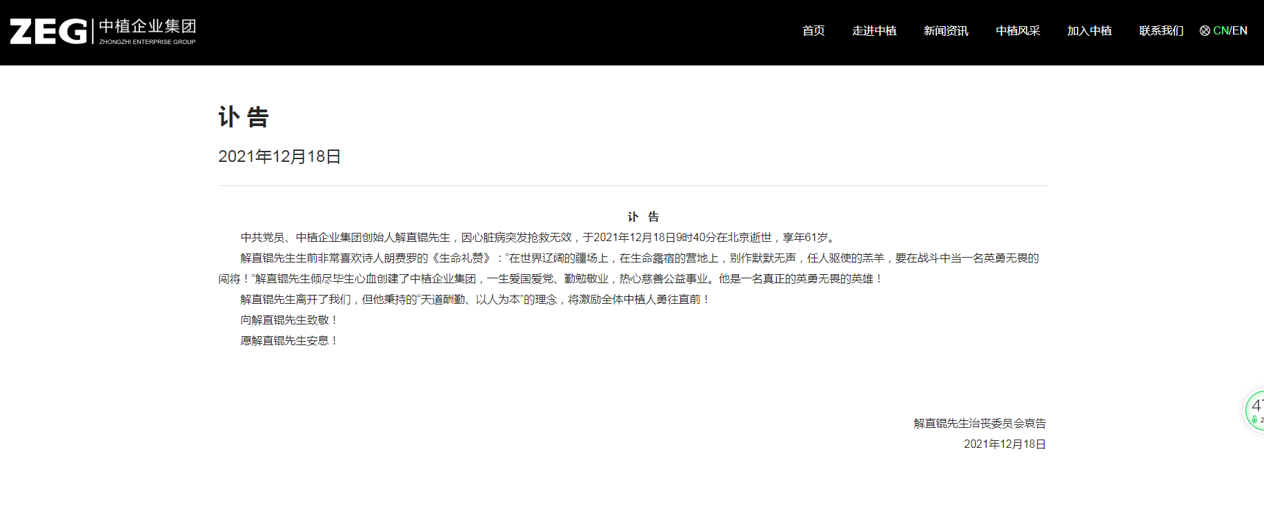 2021年12月18日,61歲的“中植系”掌門人解直錕離世。