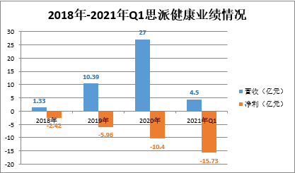 雖然從融資歷程來看,思派健康可以算作是資本市場的“明星企業(yè)”,但目前仍未實現(xiàn)盈利。公開數(shù)據(jù)顯示,2018年至2021年一季度,思派健康虧損分別為2.42億元、5.96億元、10.4億元、15.73億元,呈現(xiàn)持續(xù)擴大的局面,明確虧損累計相加得34億元。