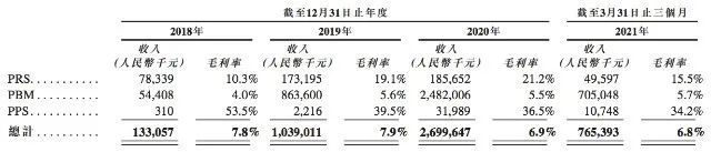目前,思派健康有三條業(yè)務(wù)線,包括醫(yī)生研究解決方案(PRS)、藥品福利管理(PBM)及供貨商與支付方解決方案(PPS)。其中,報告期內(nèi)來自藥品福利管理(PBM)的收入分別占總收入的40.9%、83.1%、91.9%及92.1%。