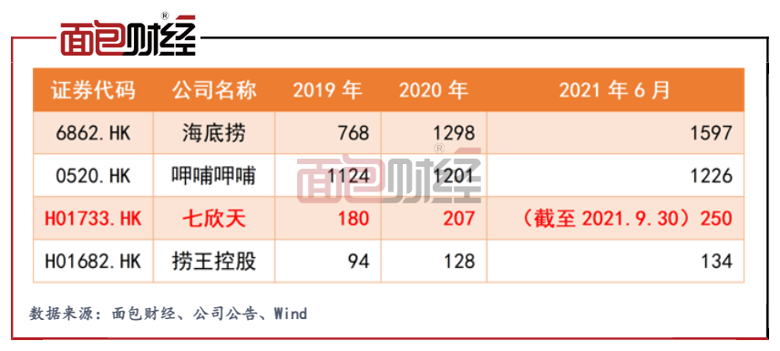 截至最后實(shí)際可行日期,七欣天共在48個(gè)城市經(jīng)營(yíng)256家餐廳,業(yè)務(wù)主要集中在江蘇省及周邊地區(qū)。相比已上市的海底撈、呷哺呷哺,公司的餐廳數(shù)量仍有較大差距。七欣天在IPO資料中提到預(yù)計(jì)2022-2024年年均新增100家餐廳,這一增速比同樣正在沖刺港股IPO的撈王更高一籌,撈王未來(lái)年均新增目標(biāo)約為76家。