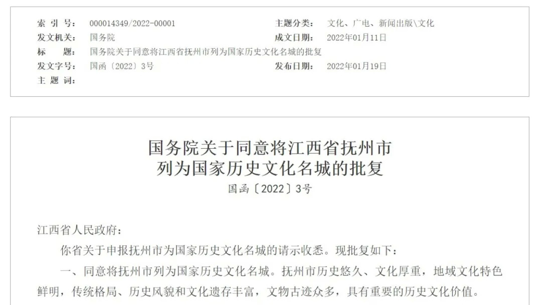 據(jù)媒體報道,江西撫州市在前不久正式成為“國家歷史文化名城”。