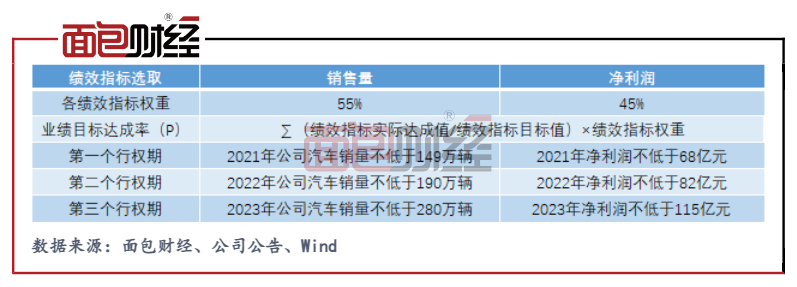 2022年公司第二個解除限售期及第二個行權(quán)期的業(yè)績考核要求為2022年公司汽車銷量不低于190萬輛;凈利潤不低于82億元。據(jù)此銷量目標計算,2022年公司汽車銷量同比需增長48.4%。
