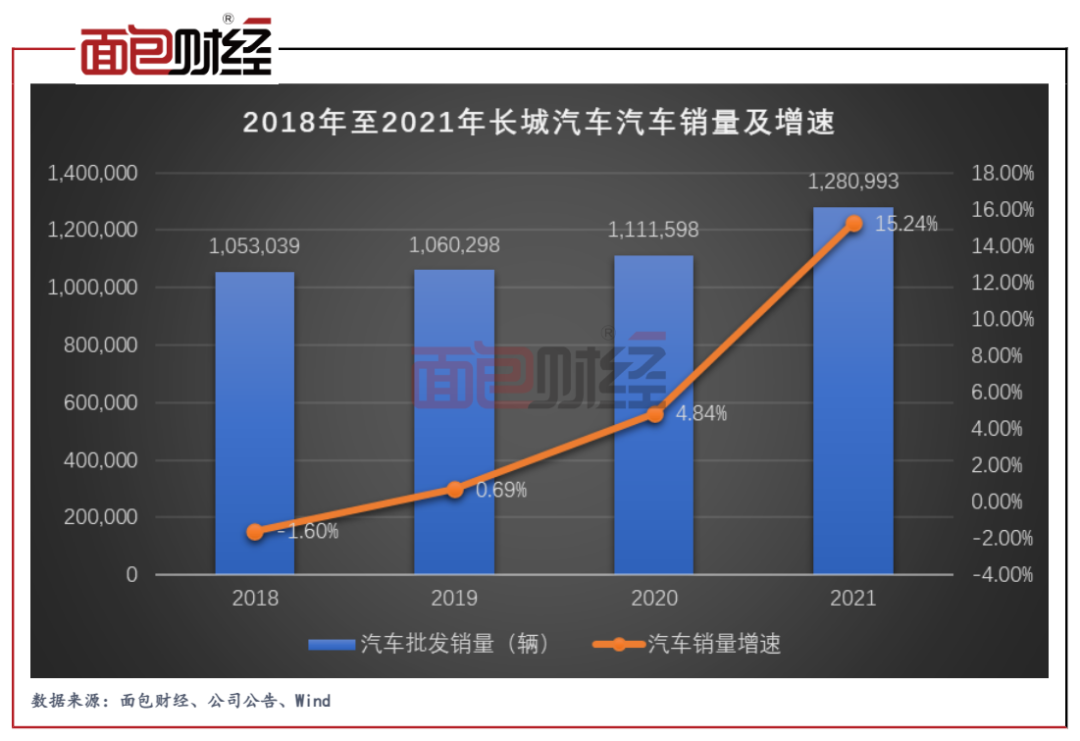 2021年全年,長城汽車實現(xiàn)批發(fā)銷量128.1萬輛,同比增長15.24%,同比增速有較大改善。其中新能源車累計銷售13.7萬輛,同比增長138.5%,銷量占比由上年的5.17%提升至10.7%,在公司所有品牌車型中增速最快。