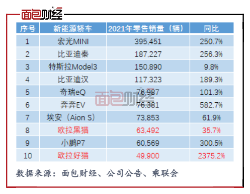 公司新能源品牌歐拉全年實現(xiàn)批發(fā)銷量13.5萬輛,同比增長140%。在乘聯(lián)會發(fā)布的1-12月國內(nèi)新能源轎車零售銷量排行榜中,歐拉黑貓和歐拉好貓分別以6.35萬輛、4.99萬輛的銷量排在第8名、第10名。