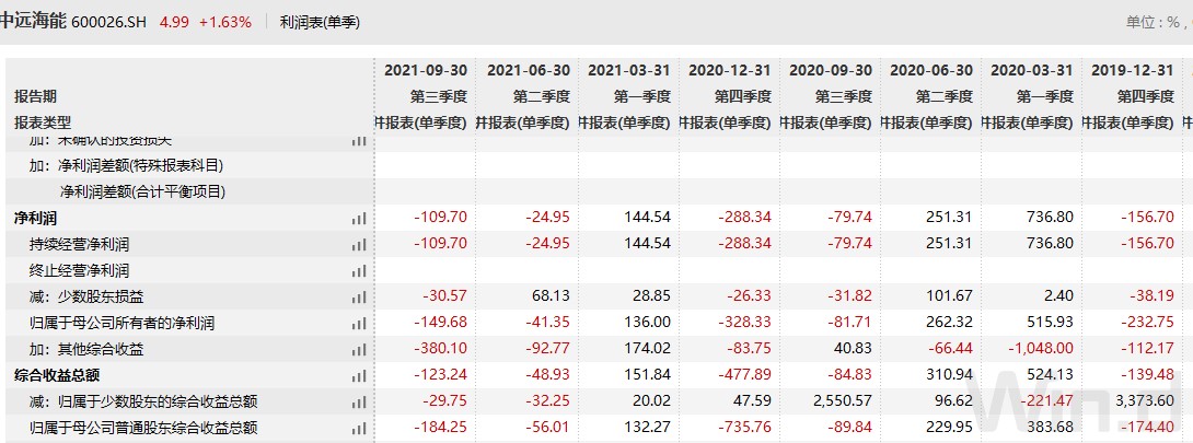 中遠(yuǎn)海能的2021年業(yè)績出現(xiàn)了“坑”,預(yù)計2021年度實現(xiàn)歸母凈利潤為-49.2億至-51.2億元,扣非后歸母凈利潤為-49.2億至-51.2億元。