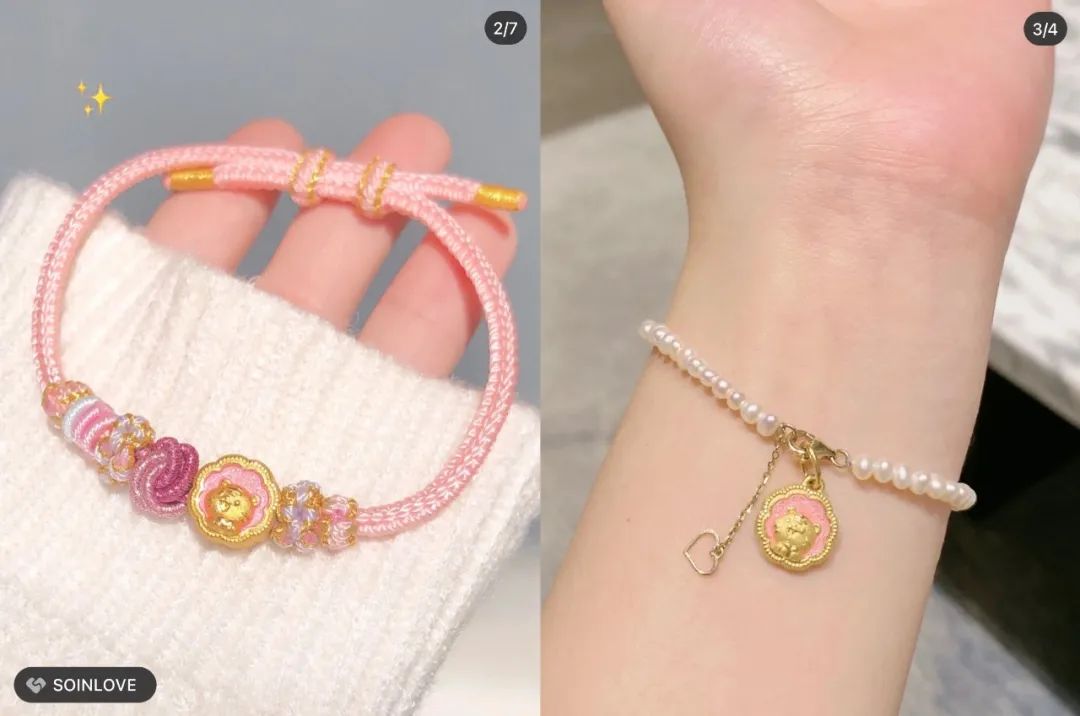 系好金剛結(jié)的紅繩中央,是一顆虎頭形狀的999足金平安扣。“虎年帶個小老虎,希望來年虎虎生威。”即便不是本命年,也有很多像姚蕓一樣的人會選擇在新年里給自己購入一款生肖金飾,某種意義上,這算是開啟幸運美好一年的象征,同時也是在完成一種儀式感。