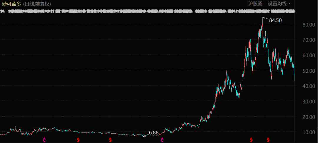 很多人曾質(zhì)疑妙可藍(lán)多洗腦式廣告的燒錢起家模式,然而幾年之后,妙可藍(lán)多真的打開了中國(guó)奶酪企業(yè)的局面,股價(jià)也隨之“開掛”,從2019年初的8元左右一路上升到去年最高84.5元,實(shí)現(xiàn)了近10倍的增長(zhǎng)。